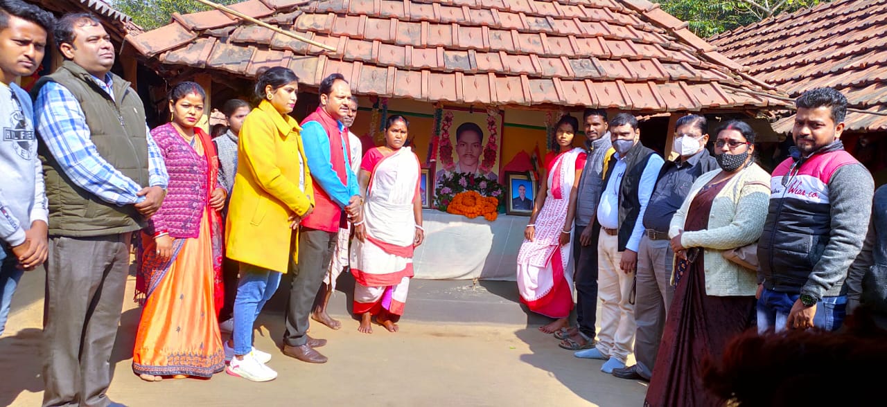 जमशेदपुर: संपूर्ण मानवता कल्याण संघ के अध्यक्ष डॉ .संजय गिरी आज बाँसदा के कोसफॉलिया गांव मैं वीर शहीद गणेश हांसदा के परिवार से मिलने पहुँचे जैसे ही वह बाँसदा चौक पहुँच ग्रमीण अध्यक्ष रासु भुइँया के नेतृत्व मैं पुष्पोंगुच्छा दे कर जबदरस्त स्वागत किया गया उसके बाद शहीद के परिवार से मिलने पहुचे वहा पहुँच के बीर शहीद गणेश हांसदा के तस्बीर पर माला अर्पण किये उसके बाद वीर शहीद के माता पिता पैर छु के आशीर्वाद लिए और उनके माता पिता को वचन दिए आने वाले समय मैं संपूर्ण मानवता संग हमेसा शहीद.परिवार के साथ सुख दुख मैं साथ रहेगा डॉ . संजय गिरी ने आशवासन दिए कि शहीद गांव मैं आने वाले समय मैं महिला के रोजगार की दिशा मे कुछ पहल करेंगे डॉ गिरी के साथ उपस्थित थे डॉ . दीपा पटनायक ,डॉ रेणु शर्मा ,डॉ . बी .नायक ,और अनसुमान नायक ,सुभम भोल ,पापुन बेरा ,जयदीप भोल ,मोनाज बारीक , एस.र कामेश आदि